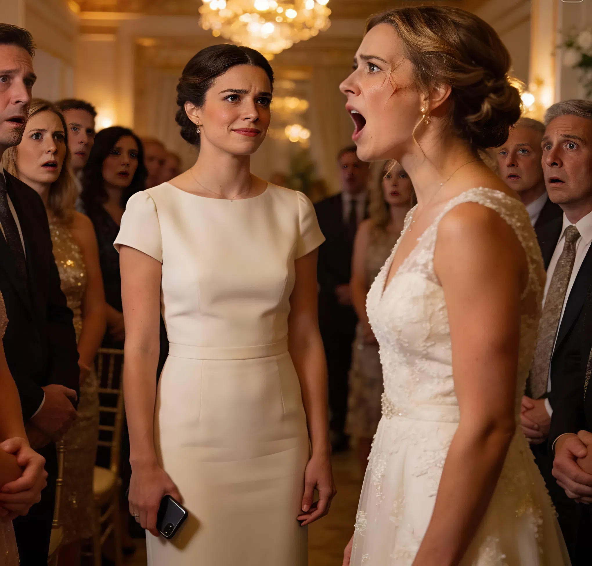 Az esküvői terem ragyogott a csillároktól és a fehér rózsáktól — egy olyan hely volt, amelyet arra terveztek