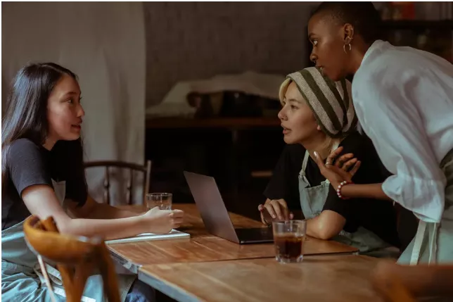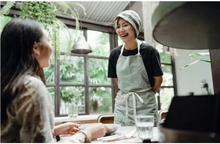 A tulajdonosnő, egy Sara nevű fiatal nő odament a nőkhöz. „Üdvözlöm önöket! Körülbelül 20 percet kell várniuk az asztalra” – mondta udvarias mosollyal.