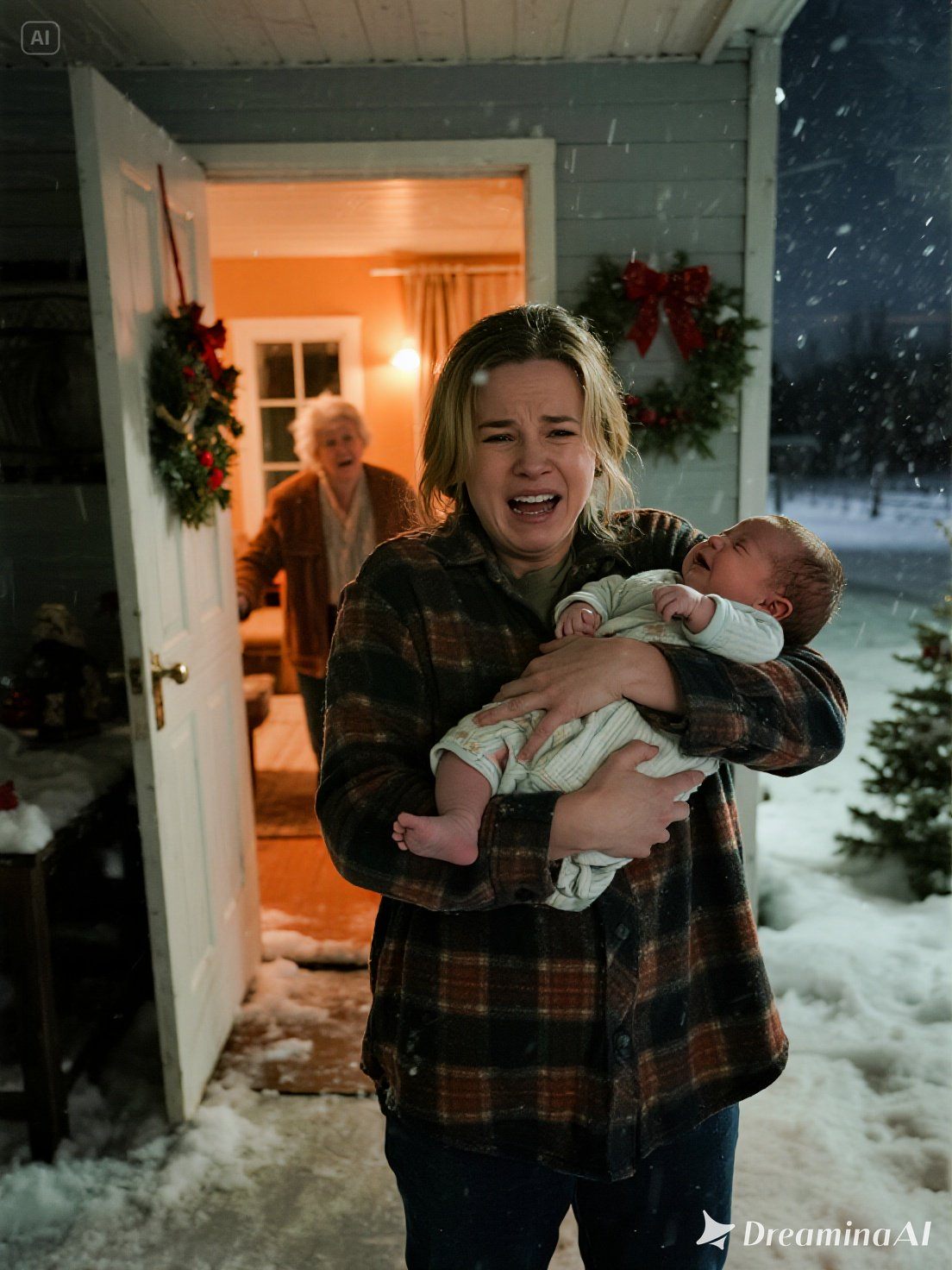 Ott álltam, mintha a földbe gyökerezett volna, a leheletem kis felhőket alkotott a levegőben, miközben a verandán a fény kialudt, mint egy végleges ítélet. Nem mehettem sehova. A mobilom szinte lemerült. Minden lépés fájdalmat okozott a varratokban, miközben Noah-t vittem a csúszós, jeges járdán.