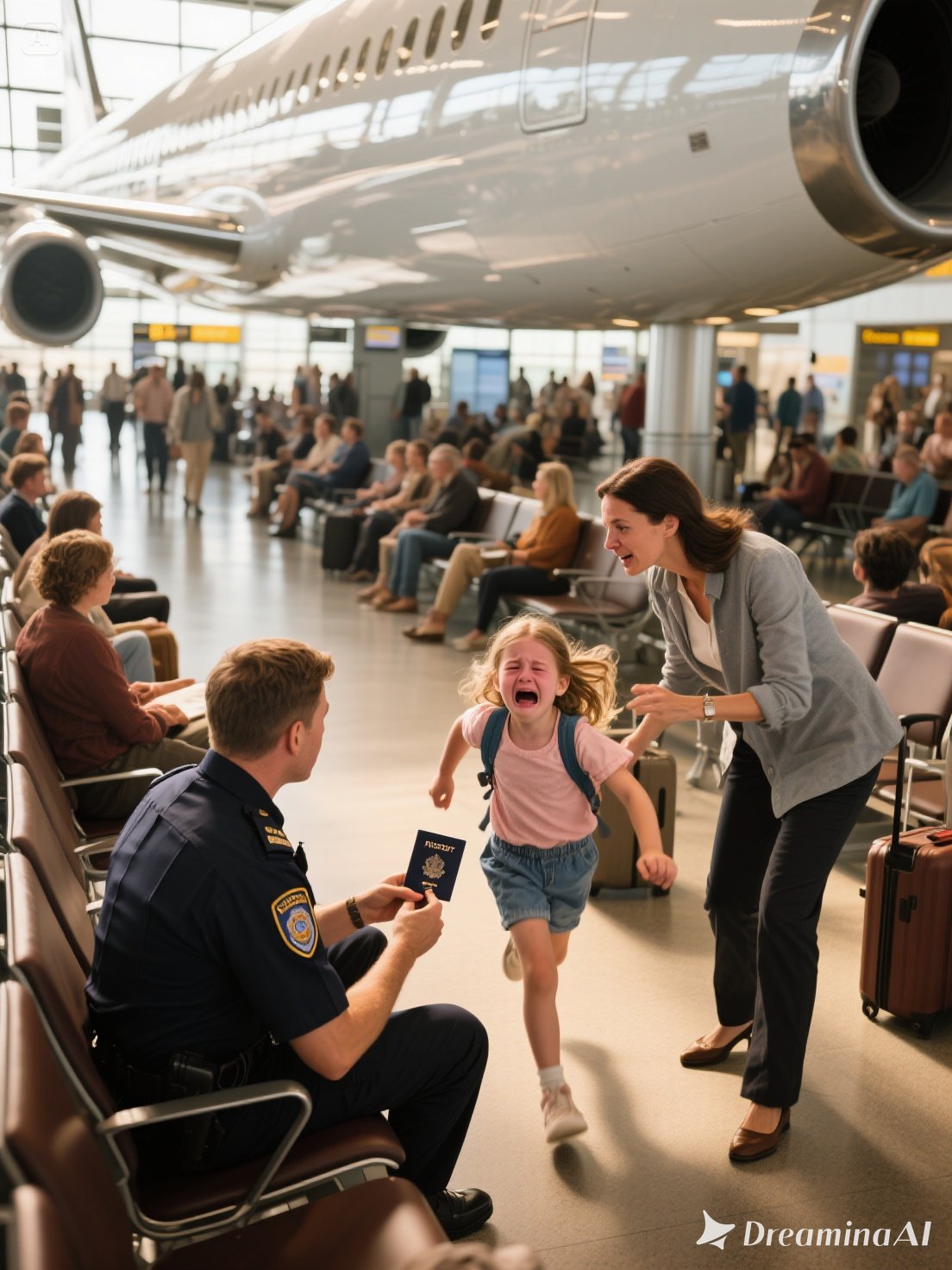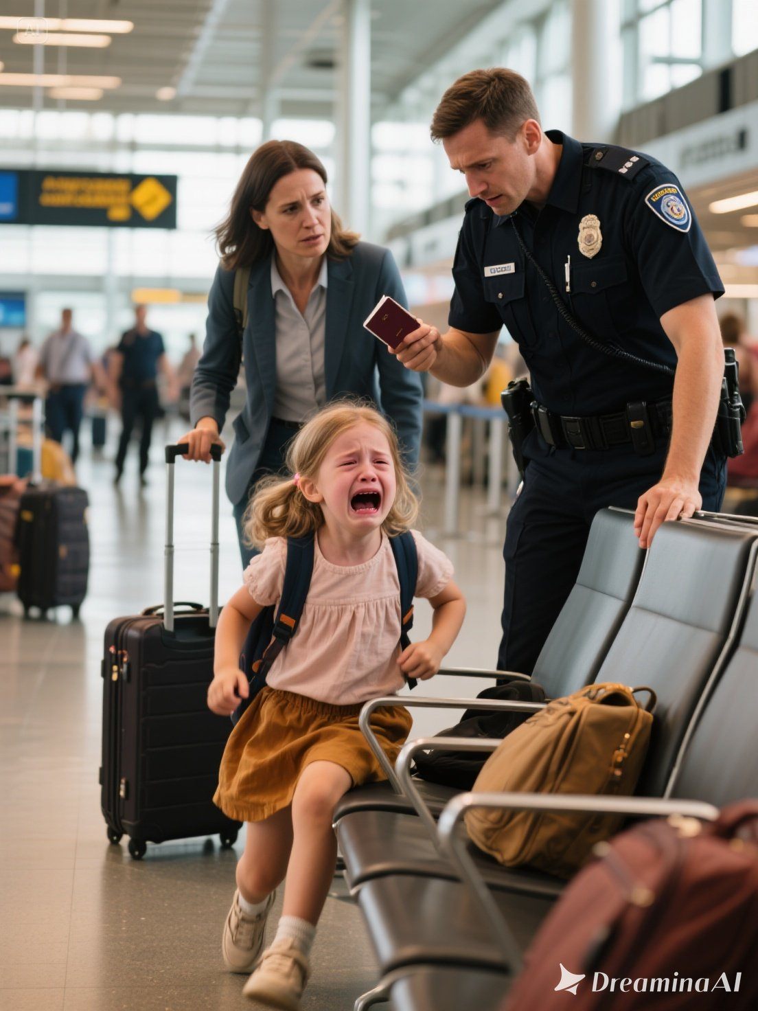 Amikor visszaértem, egyenesen ahhoz a pulthoz mentem, ahol hagytam őket. De ahelyett, hogy a családomat találtam volna ott, Zoe-t láttam meg – egyedül ült egy padon a biztonsági ellenőrzés közelében, az arca könnyekkel volt tele, miközben két reptéri biztonsági dolgozó térdelt előtte és beszélt hozzá.
