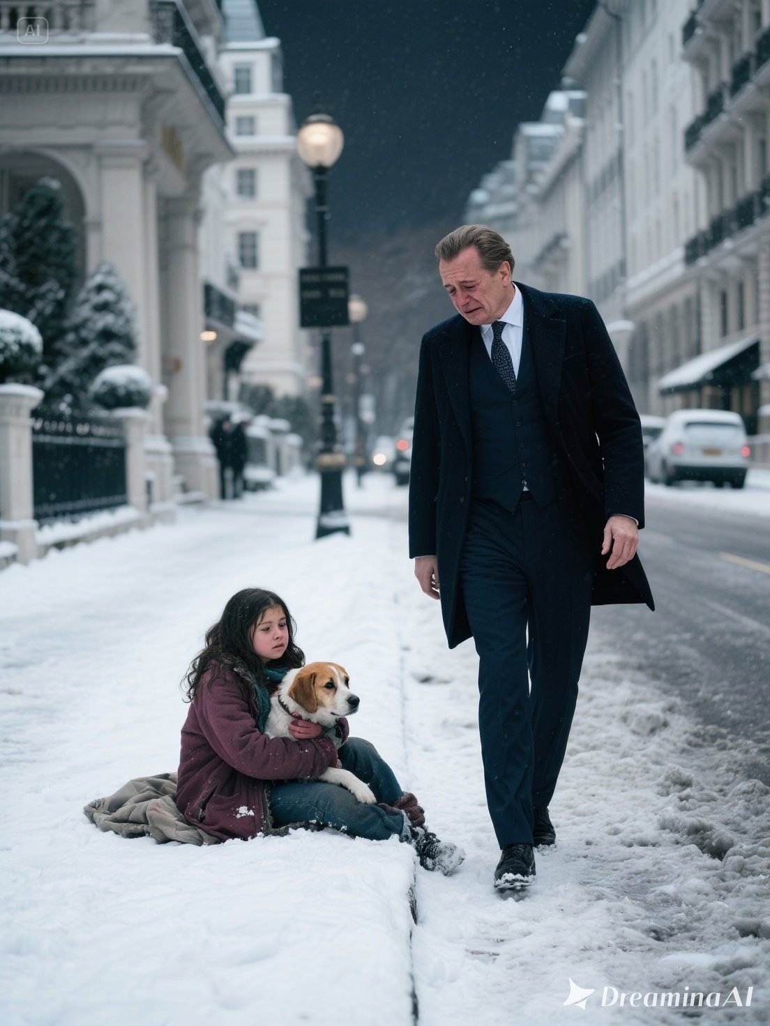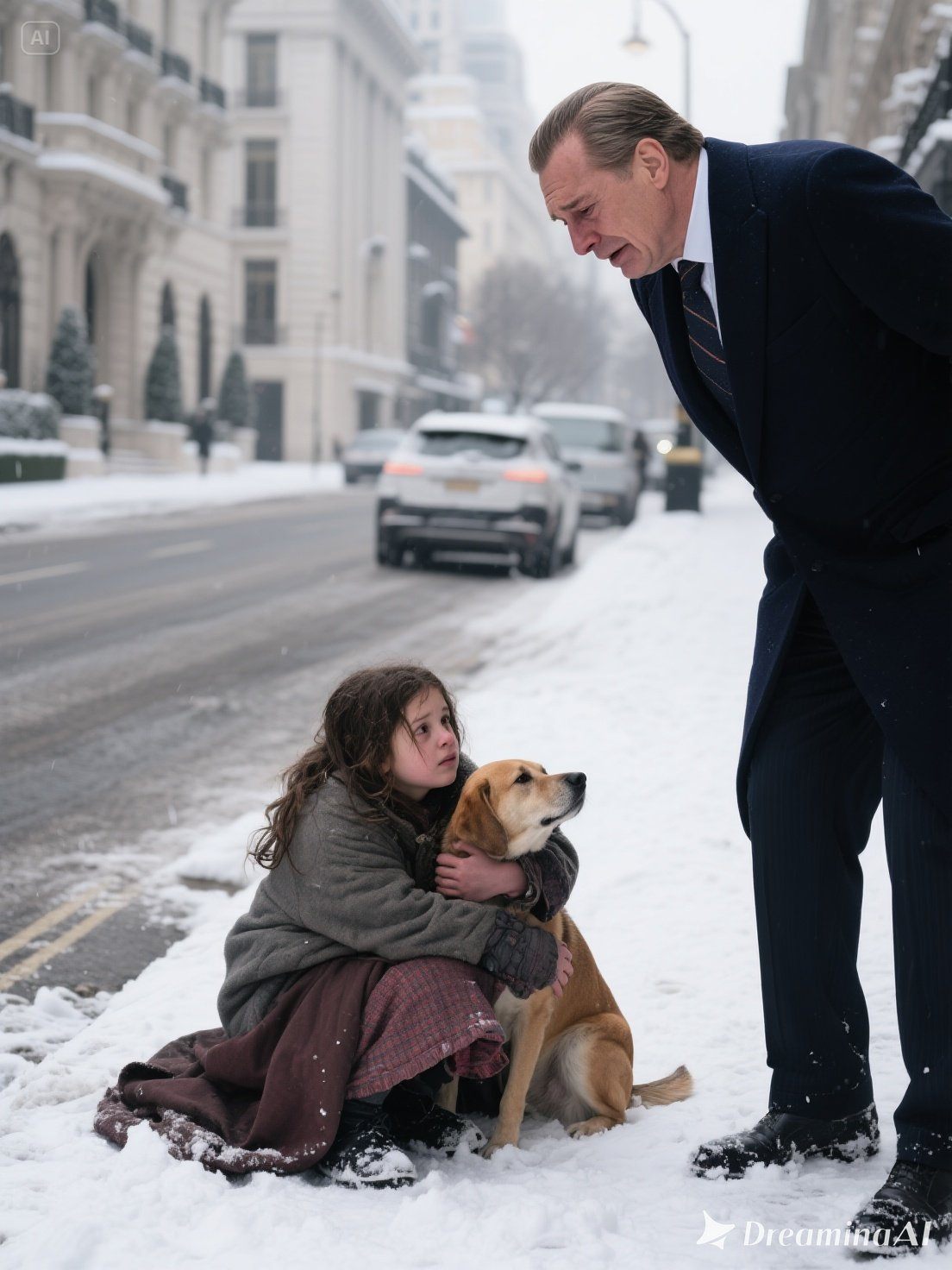 Benjamin, saját ösztöneivel dacolva, előrehajolt és leengedte az ablakot. A pislákoló utcai lámpa fényében egy apró alak kuporgott a falnál, vékony takaróba burkolózva. Mellette egy elhanyagolt fekete kutya ült, és remegett a hidegben.