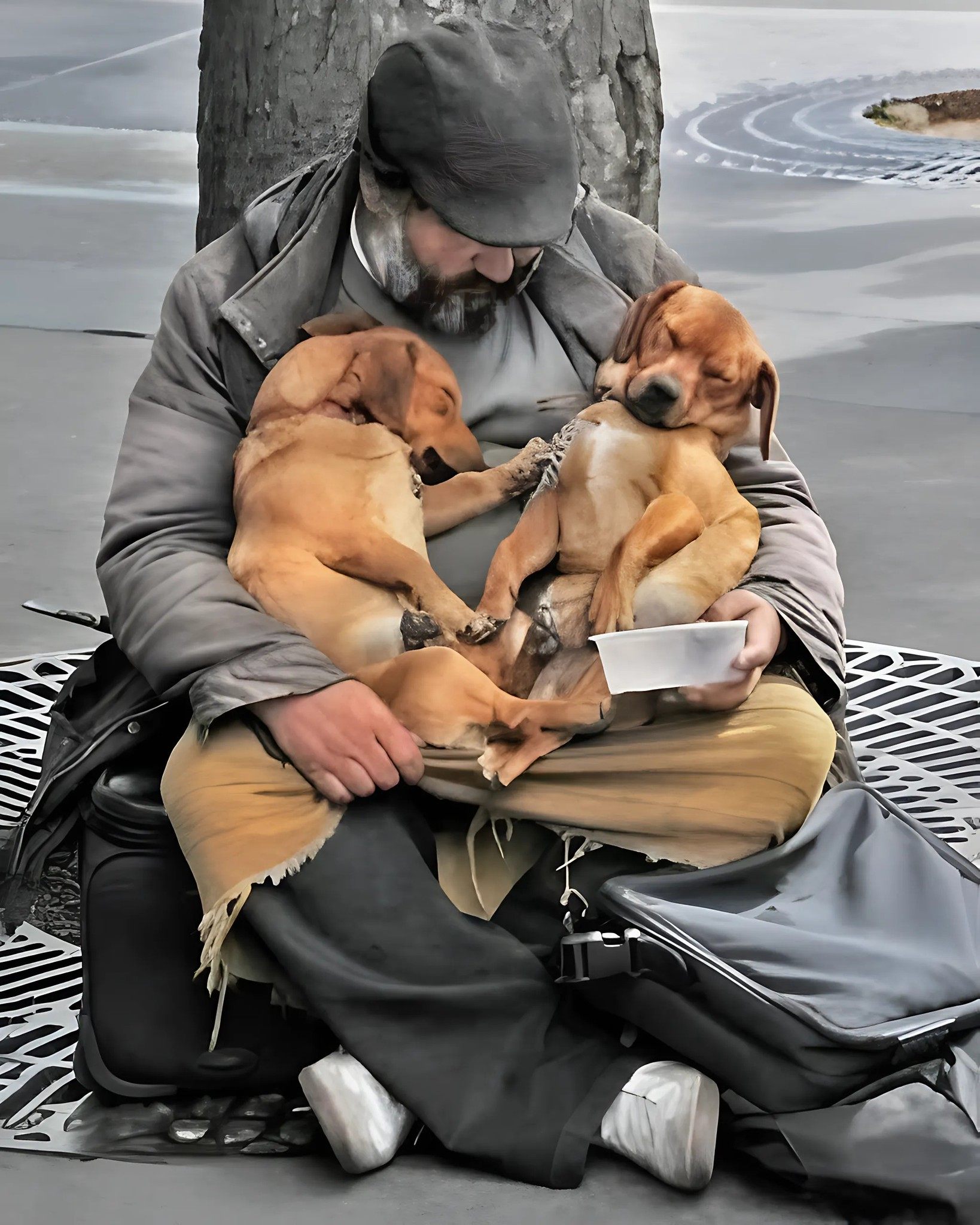 Egy fagyos éjszakán kezdődött, amikor két gyerekkel a háznál várakozva rohantam át egy élelmiszerbolt parkolóján, és millió gond járta a fejemet. Megláttam egy férfit, aki a járdaszegélyen ült, német juhászkutyája hozzá bújva, mindketten reszkettek a hidegtől. Azt mondta, hogy veterán, és előző nap óta nem evett.