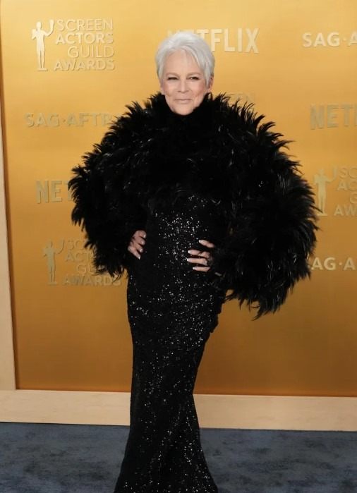 Jamie Lee Curtis ragyogott a 2025-ös SAG-díjátadón egy merész fekete ruhában, amelynek alsó része flitterekkel volt díszítve, felső része pedig drámai, tollas, terjedelmes ujjakkal. Jellegzetes divatválasztása ugyan néhány online kritikusnál „furcsa madárhoz” való hasonlítgatásokat váltott ki, ugyanakkor nagy elismerést aratott a rajongók körében, akik dicsérték alakját és stílusát egyaránt. Curtis minimalista kiegészítőkkel és letisztult megjelenéssel egészítette ki öltözékét, így a figyelem középpontjába a feltűnő ruhája került.