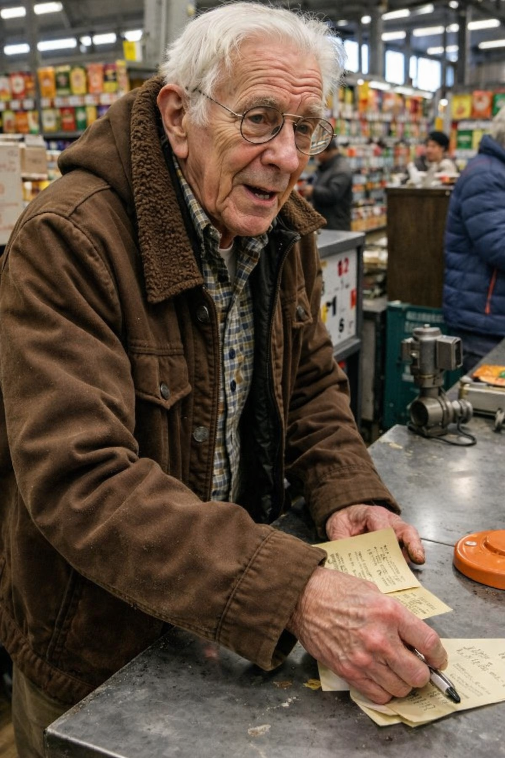 Az ajtóban egy öregember állt. Bizonytalannak tűnt, mintha eltévedt volna, és nem akarna terhet jelenteni. A kabátja úgy lógott rajta, mint egy vállfán, az ujjai túl hosszúak voltak, az egyik nadrágszára pedig felhajtva, mintha nem oda tartozna.