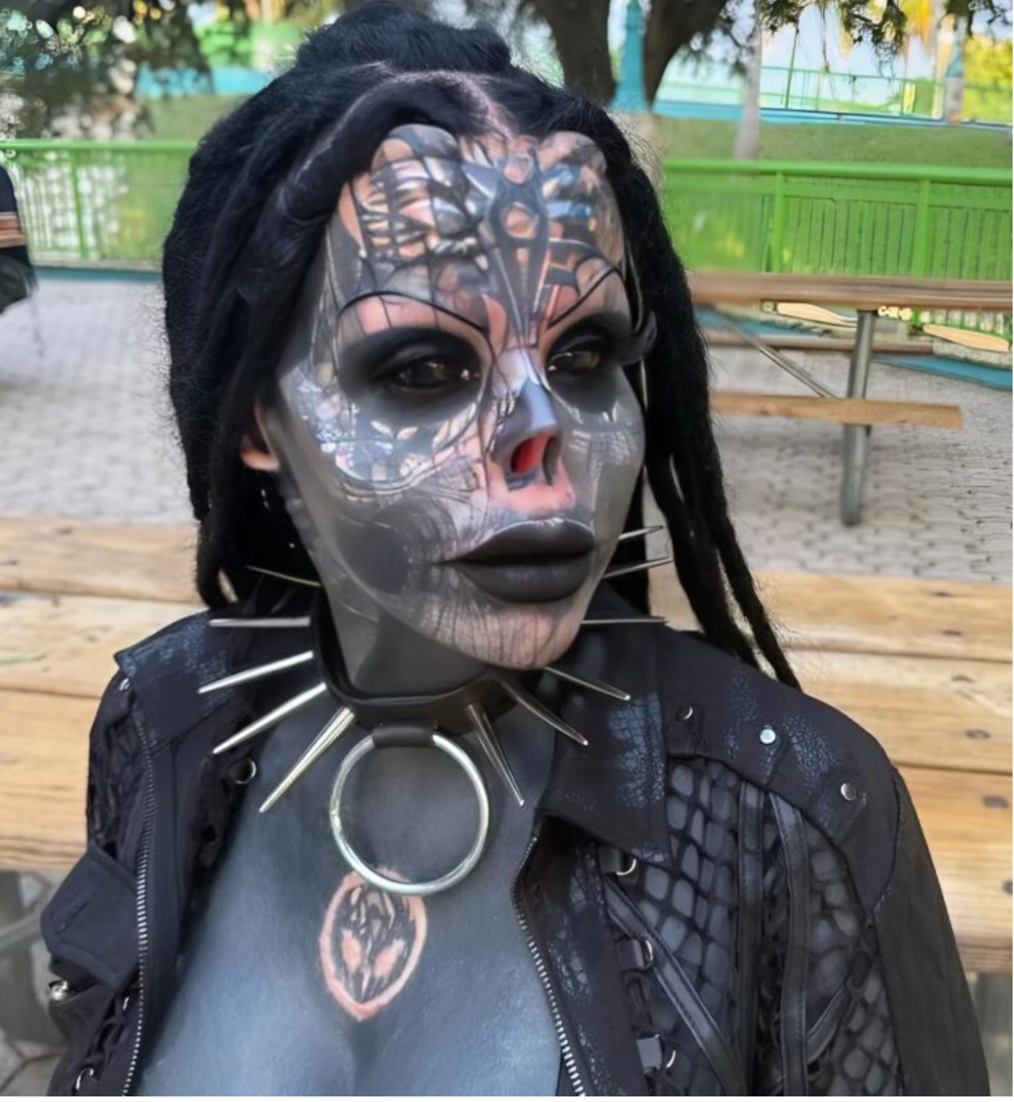 Elvesztette az orra egy részét, a füleit és a nyelvét, és mindezt kis üvegcsékben őrzi emlékbe. Ezenkívül a nő egész testét tetoválások borítják, ezért teljesen elvesztette emberi alakját. Megváltoztatta a szeme színét, és még szarvimplantátumokat is beültetett.