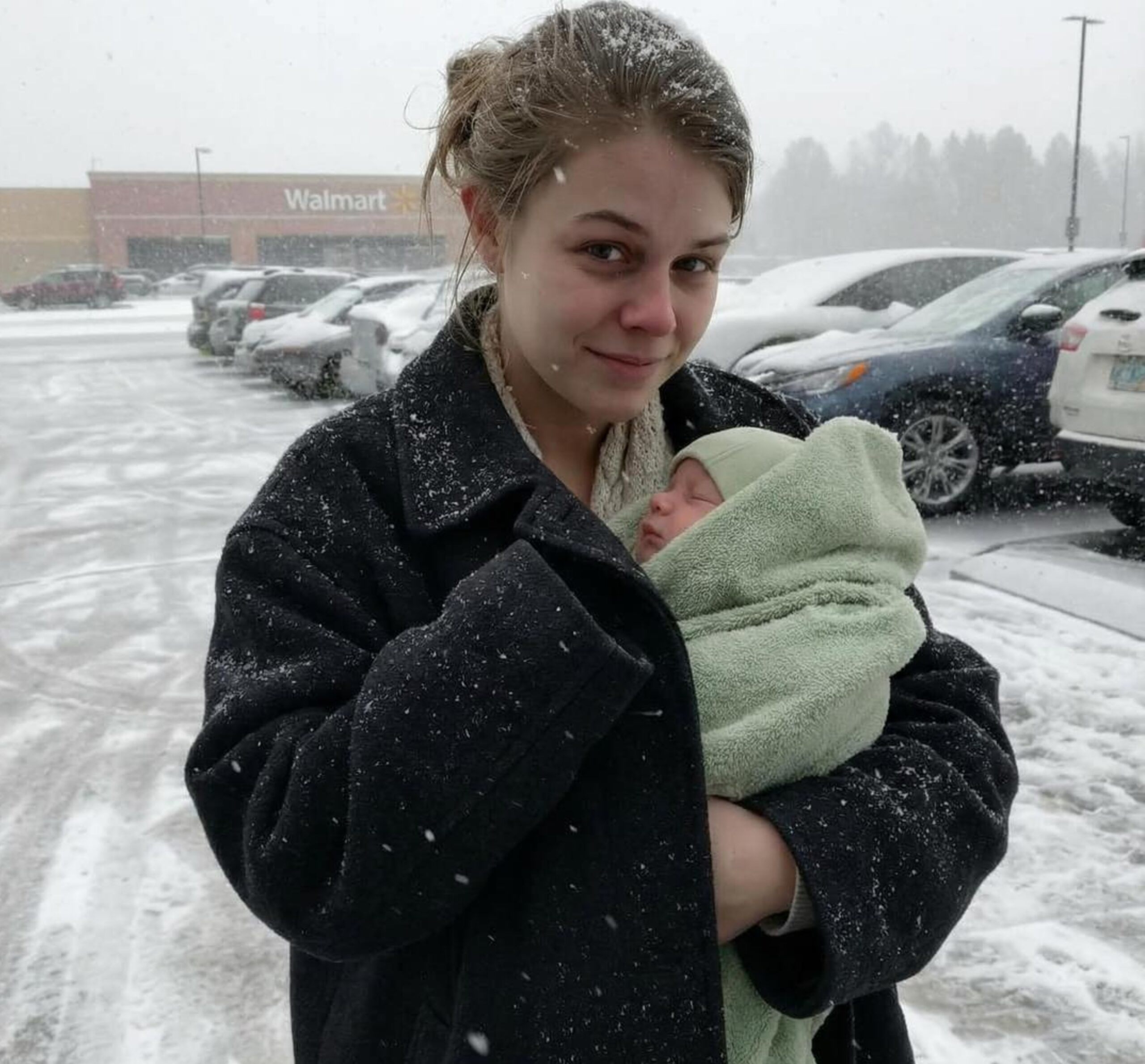 Bent a Walmart kávézójában vettem neki egy tál forró levest és egy kávét. Úgy fogta a csészét két kézzel, mintha napok óta most érezne először meleget. A baba a mellkasához simulva aludt, végre védve a hidegtől.