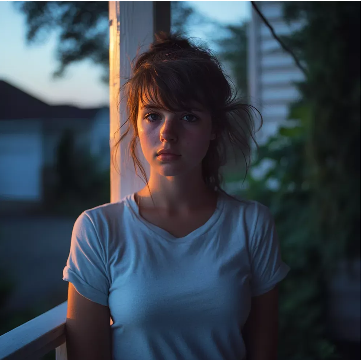 Ott állt egy nő, arcát sápadt volt, haja copfba volt kötve. Kimerültnek tűnt, de elszántnak.